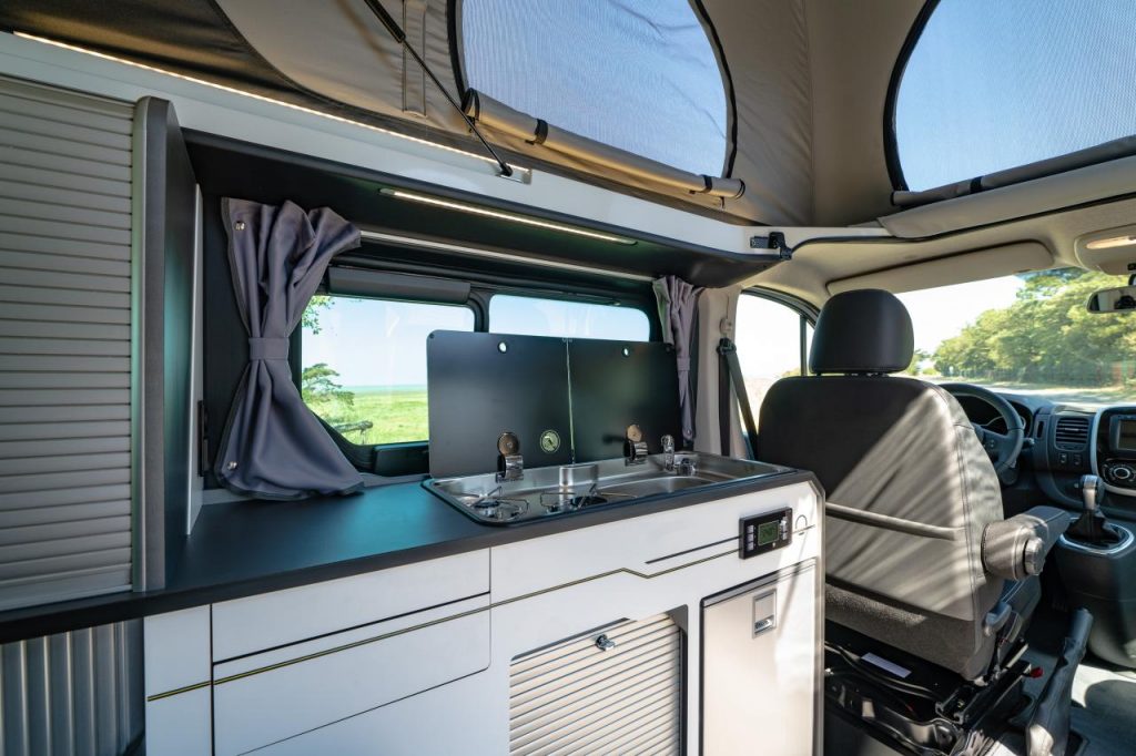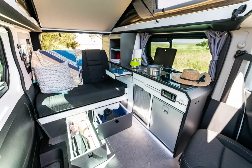 4 couchages : 2 places dans le toit et 2 autres grâce à la transformation de la banquette en lit.